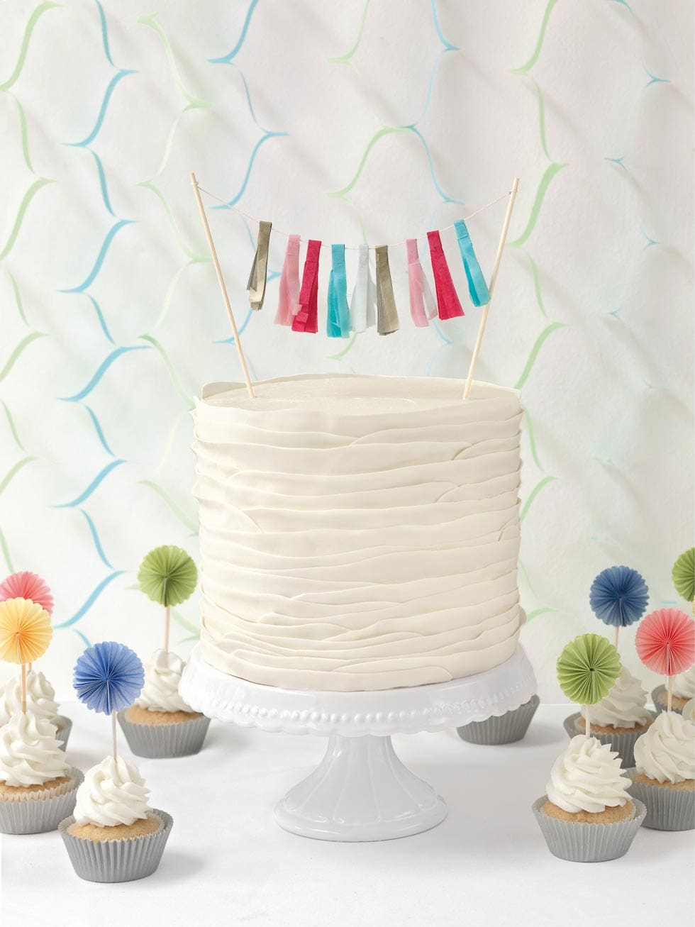 Neben klassischen Dekormustern gibt es hier auch die modische Ruffle- oder Draping Dekore, die eure einstufige Torte besonders machen.