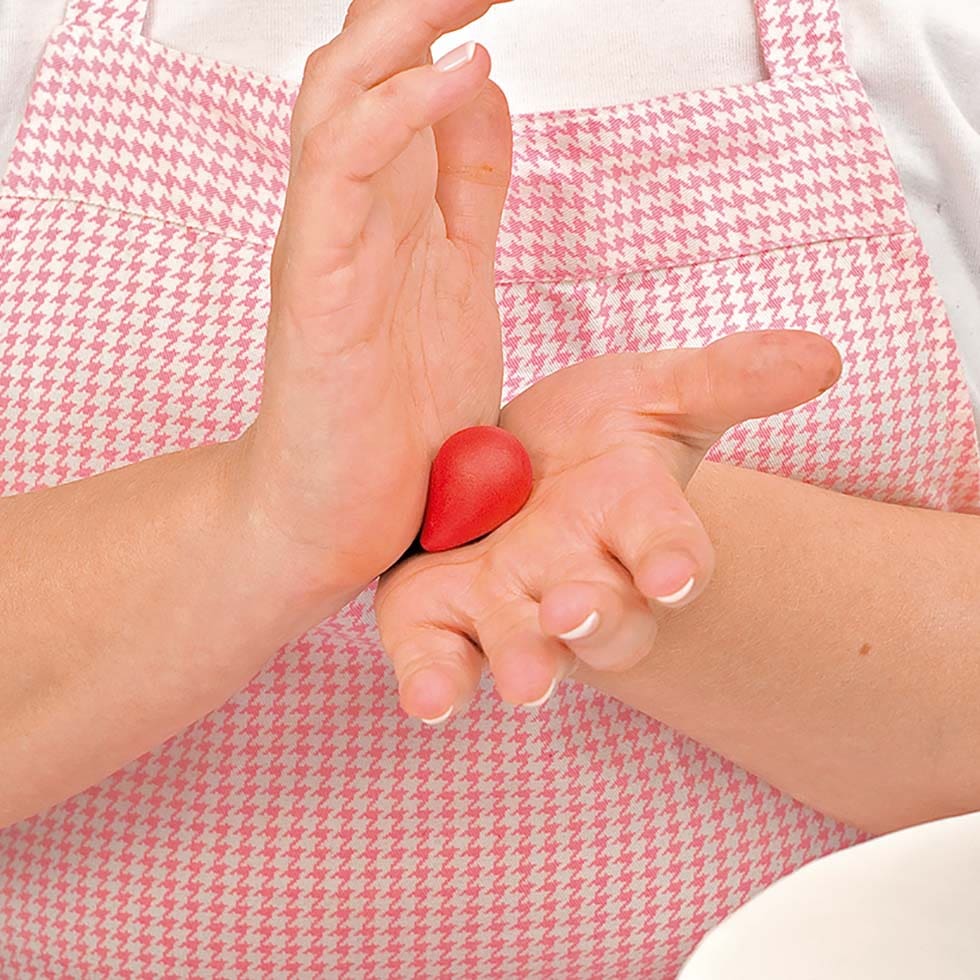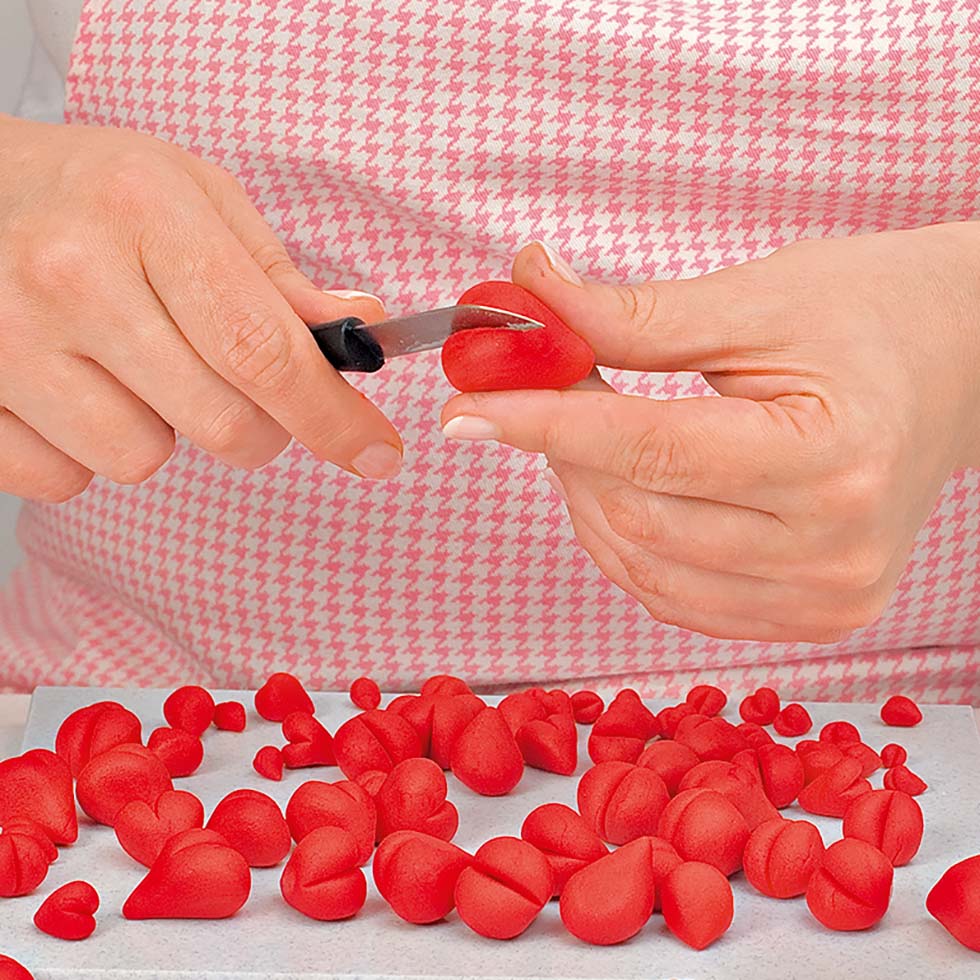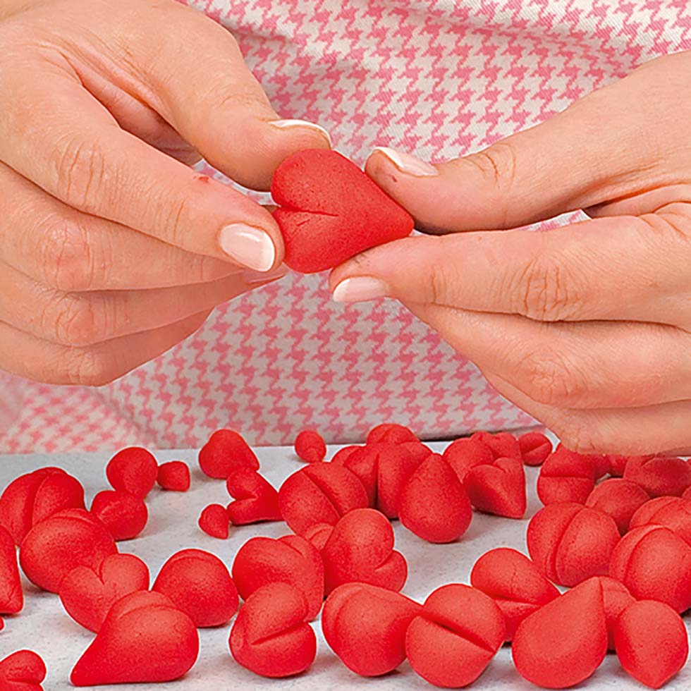 Jetzt werden aus der Marzipanmasse die Herzen modelliert: