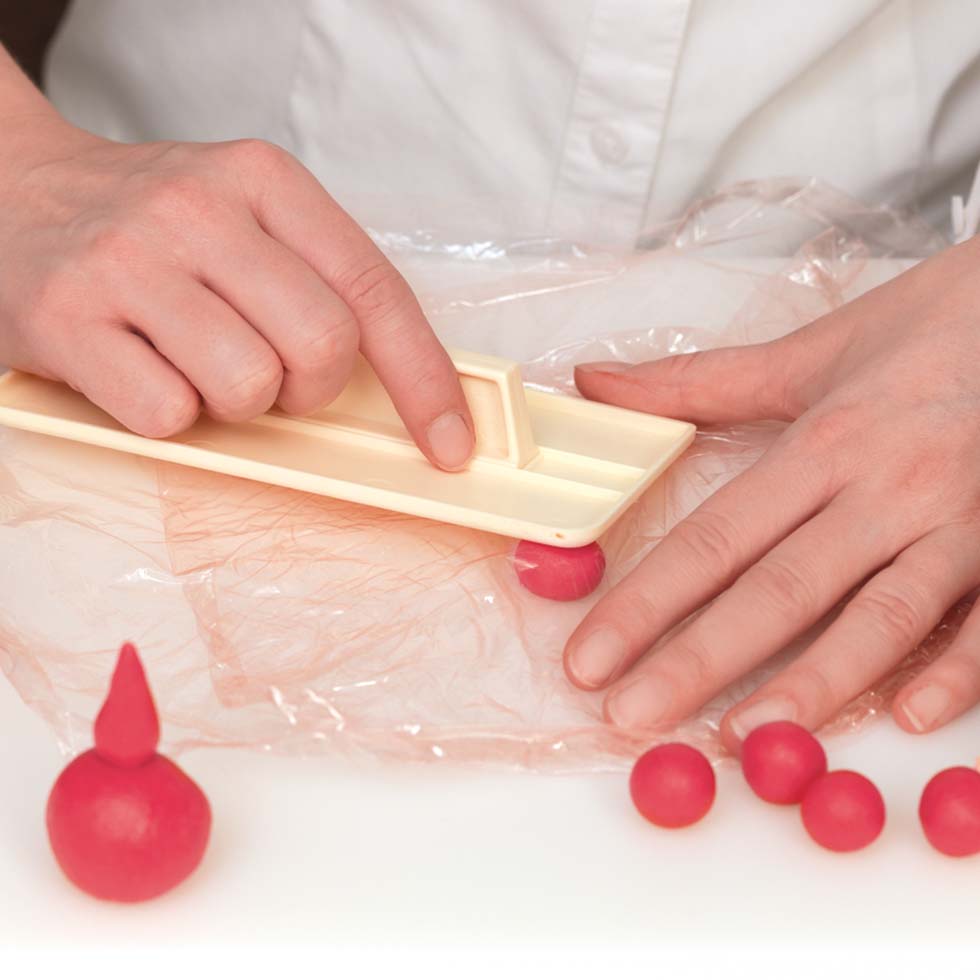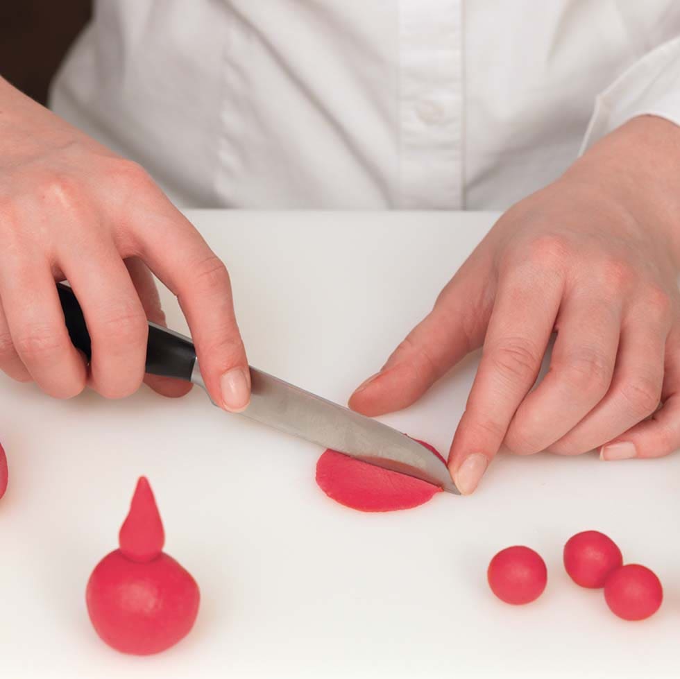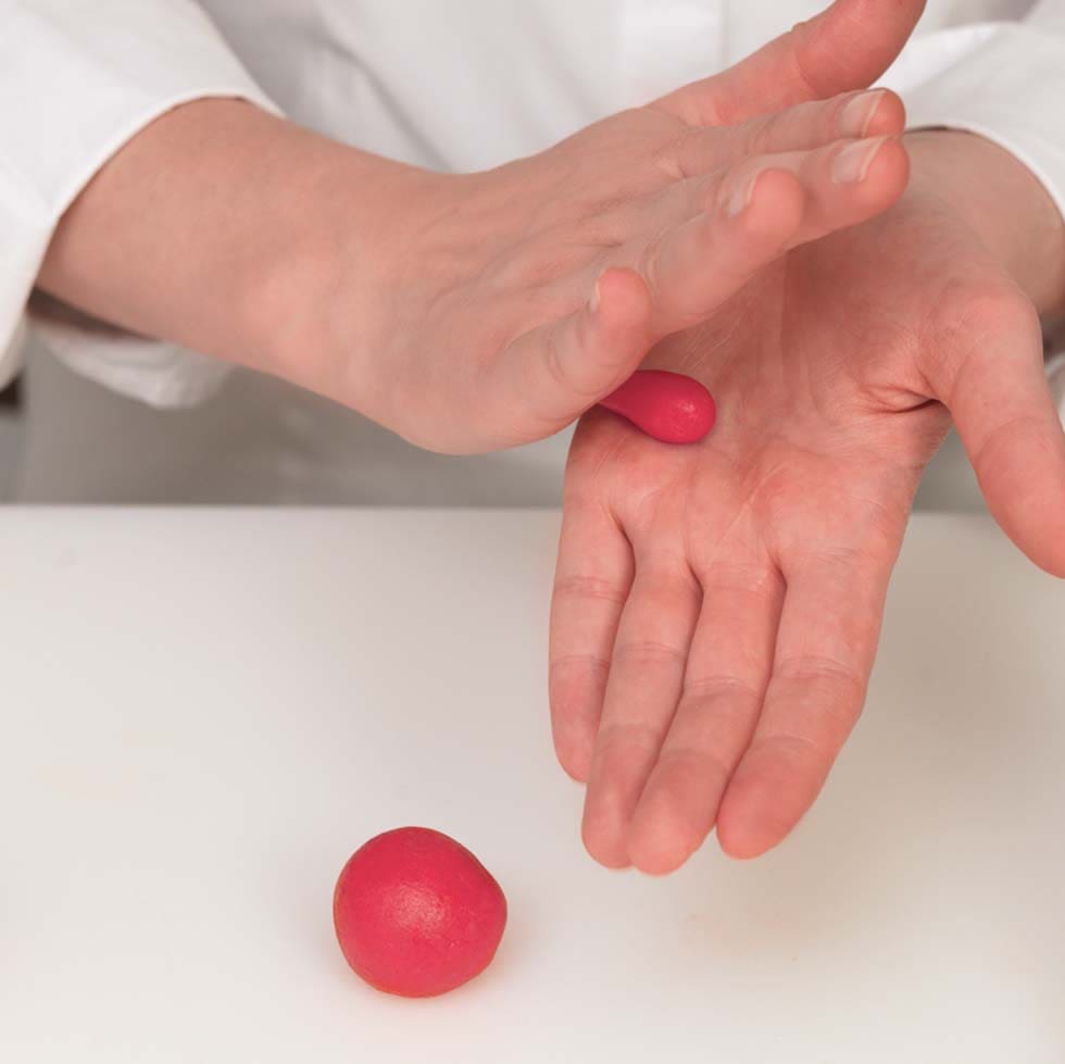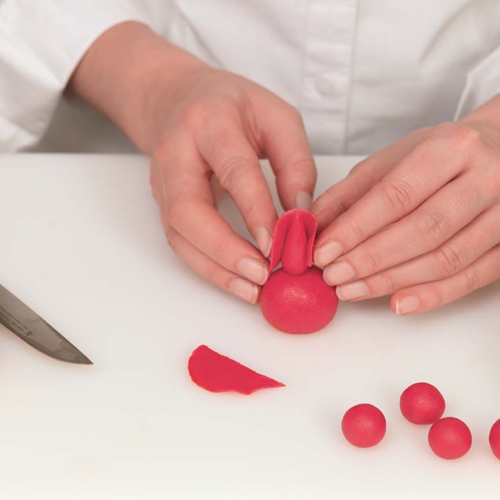 Jetzt werden aus der Marzipanmasse die Herzen modelliert: