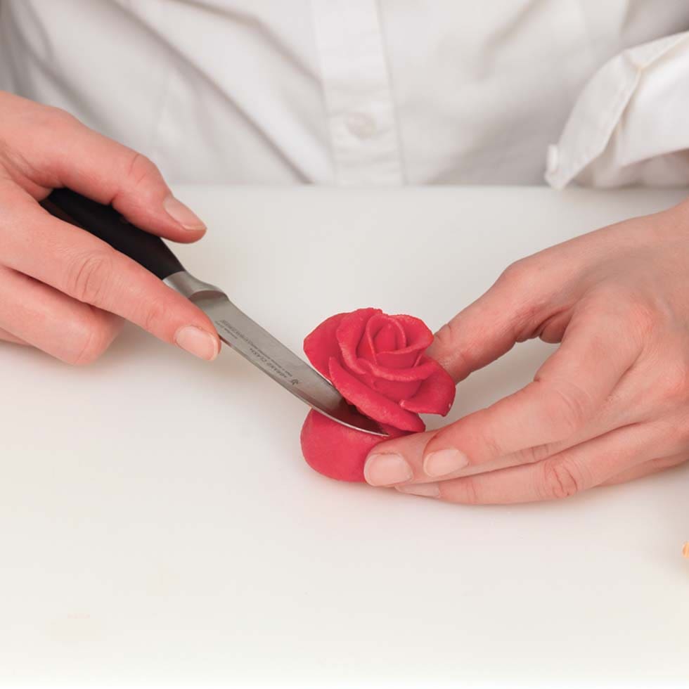Anschließend die Mitte des Rosenblatts etwas nach unten formen, um den natürlichen Eindruck zu erhalten.