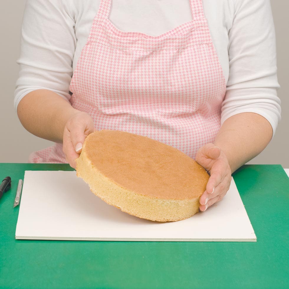 Den fertigen Biskuit auf eine Kappaplatte* legen.
