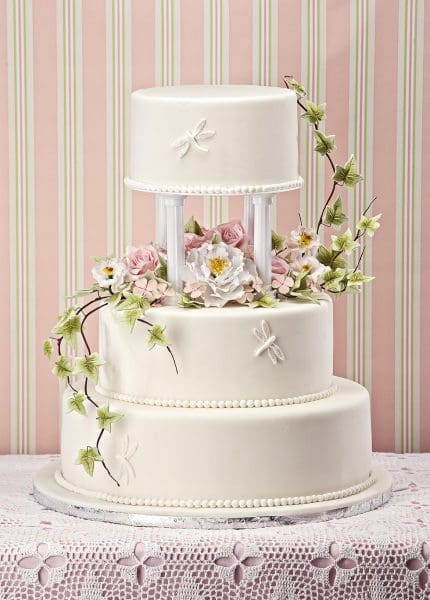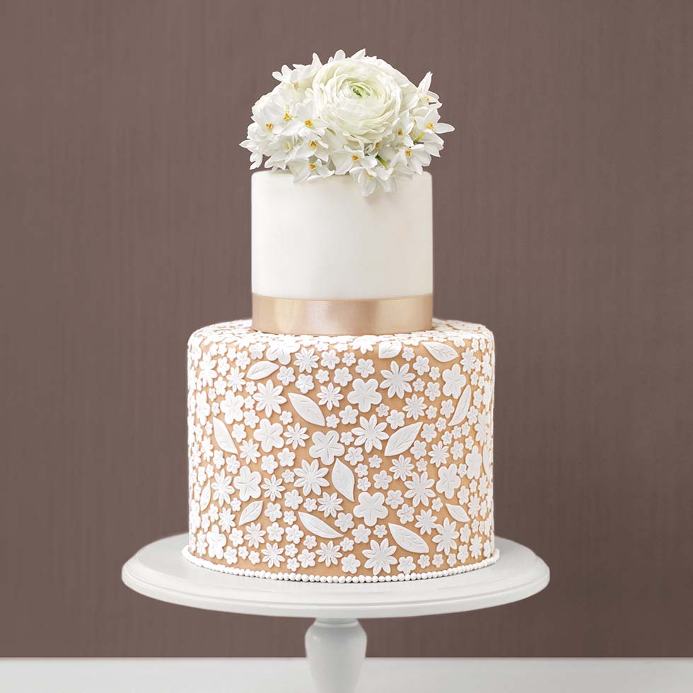 Blumen können auf ganz unterschiedliche Weise auf der Hochzeitstorte platziert werden: