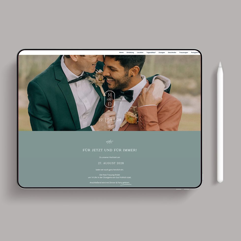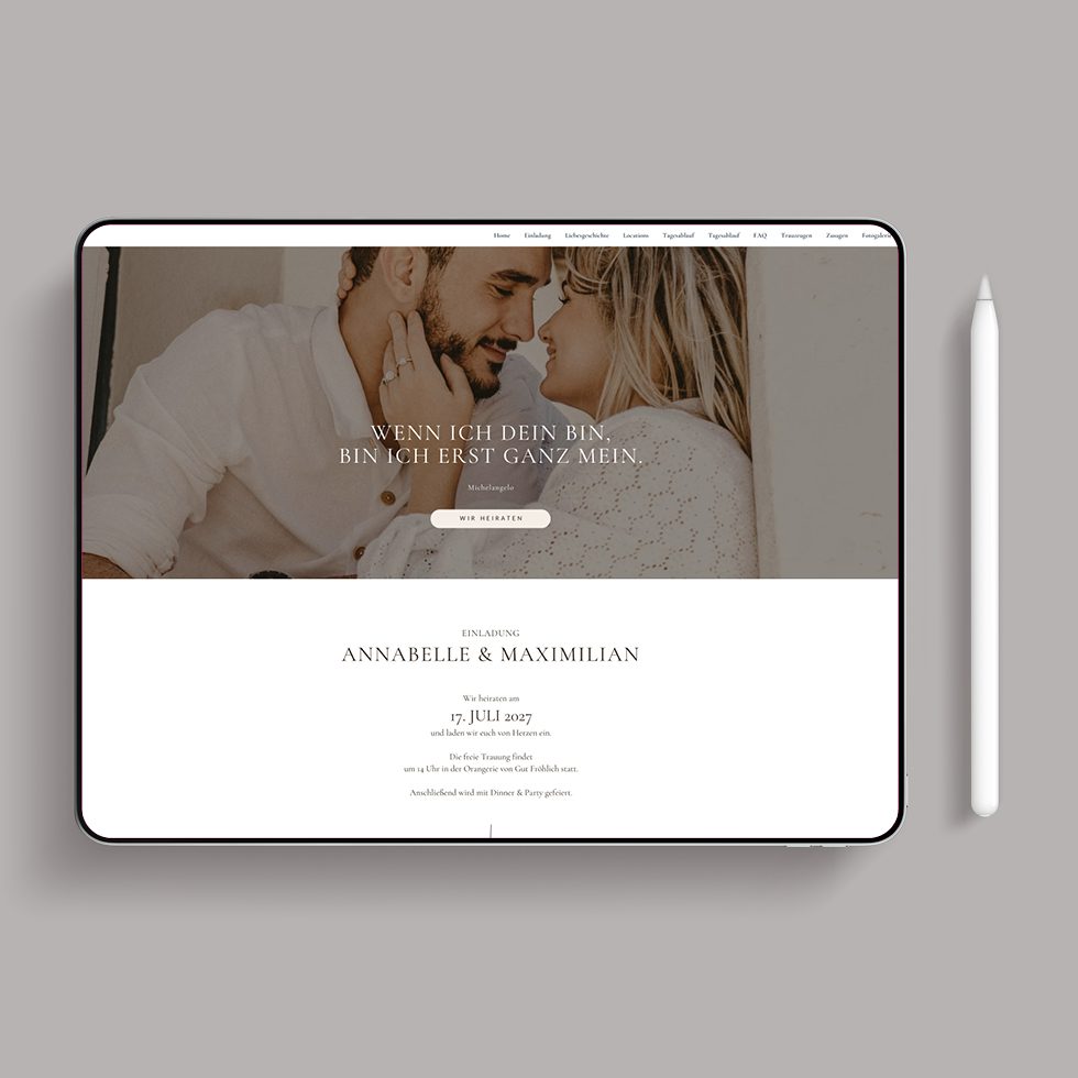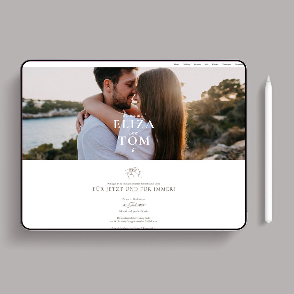 Damit eure Hochzeitseinladung nicht mit zu viel Text überfrachtet wird, bietet sich eine Hochzeitshomepage an. Denn darin könnt ihr eure Gäste über alle Details umfangreich informieren, damit keine Frage offenbleibt.