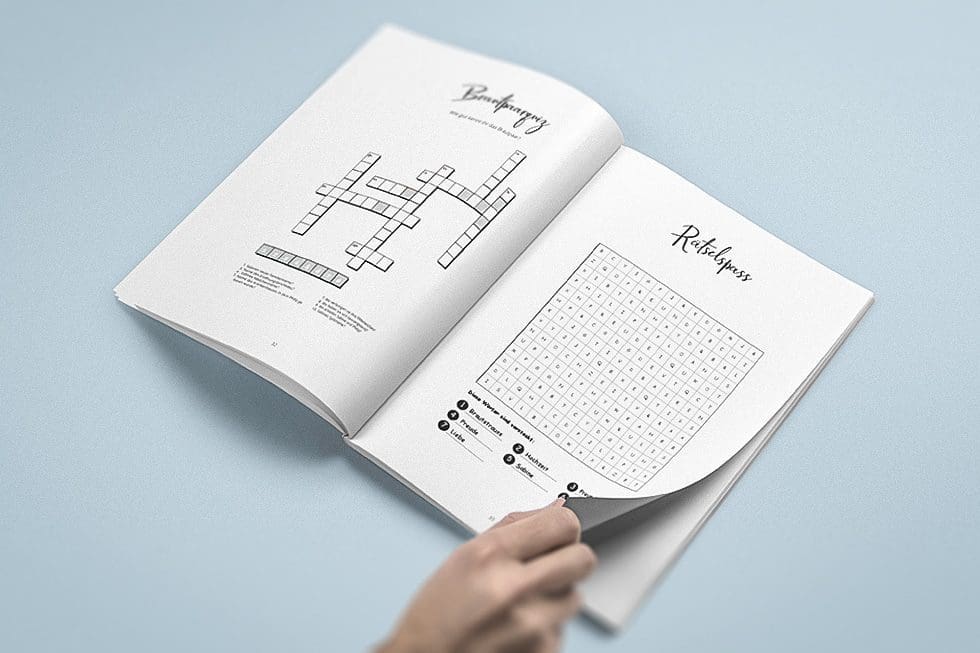 Kreuzworträtsel & Quizze gehören zu den beliebtesten Ideen für Hochzeitszeitungen. Sie unterhalten, verbinden Generationen und sorgen für Gesprächsstoff – vor, während und nach der Feier.