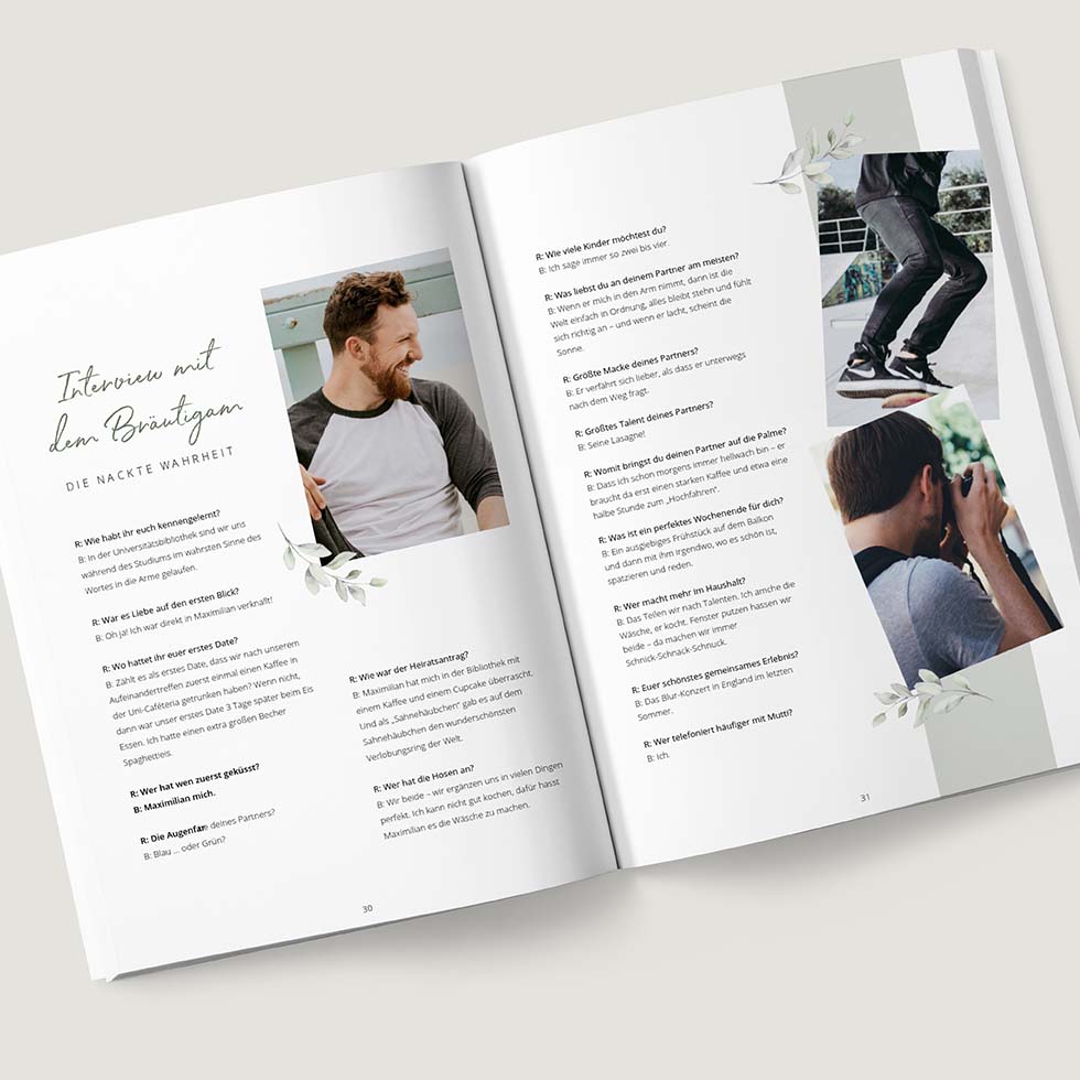 Mit einem Interview mit den Trauzeugen könnt ihr schnell und einfach in eurer Hochzeitszeitung tollen Inhalt erstellen, denn die Freunde haben es mit den Fragen viel einfacher, ihren Text zu schreiben.
