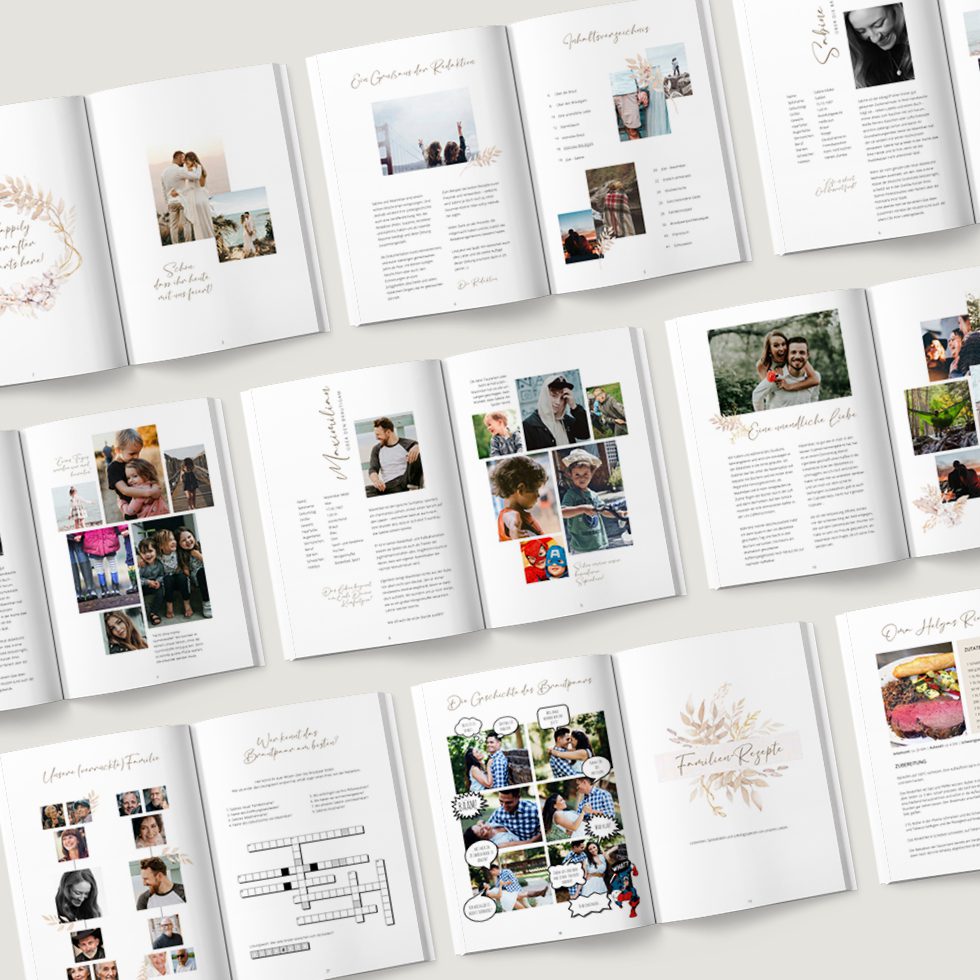 Mit unseren Vorlagen spart ihr enorm viel Zeit – rechnet dennoch mit 1–2 Wochen Vorlauf, damit alle Beiträge gesammelt und alles liebevoll zusammengestellt werden kann.