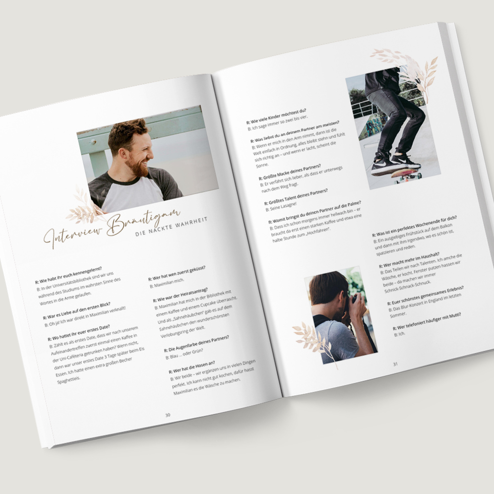 Entdeckt die schönsten Inspirationen für abwechslungsreiche Inhalte in eurer Hochzeitszeitung:
