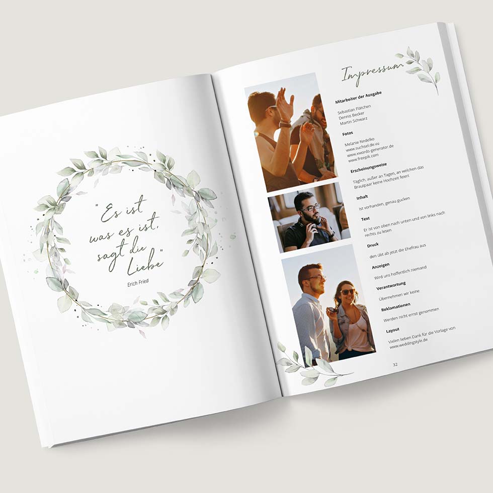 Hochzeitszeitung drucken