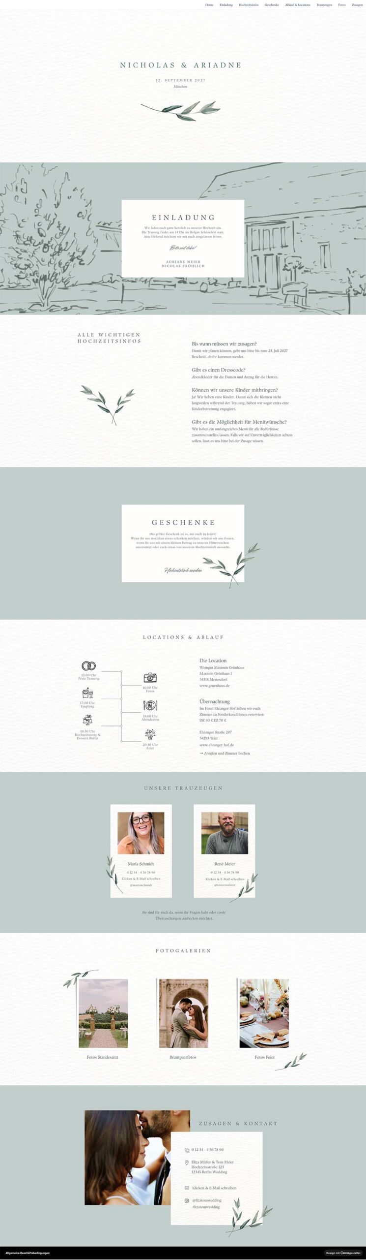Alle Homepage Inhalte für die Hochzeit bereits vorgestaltet