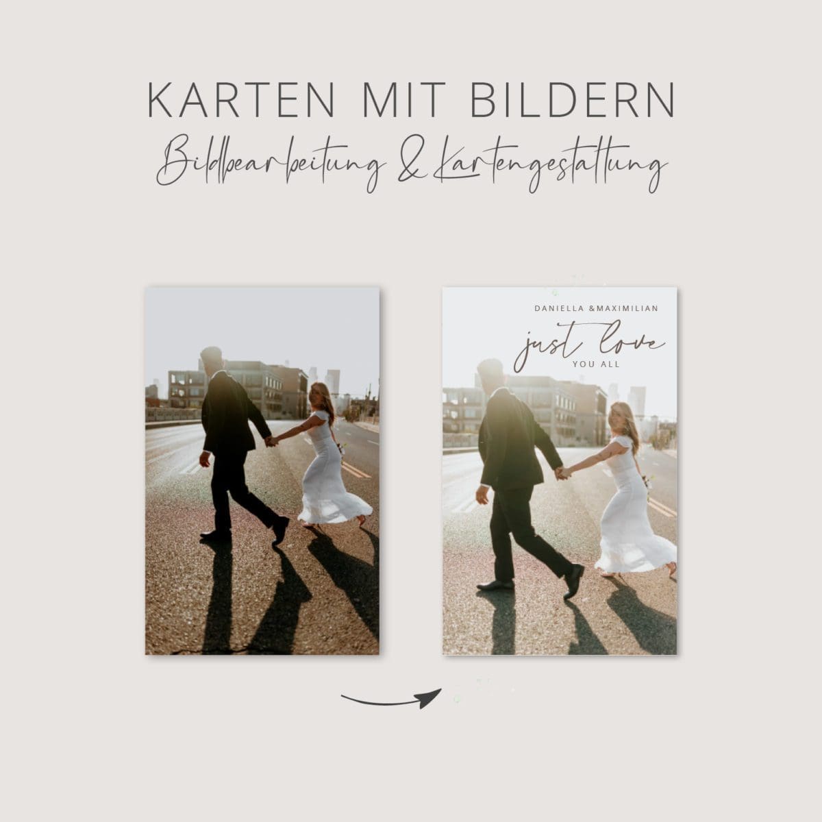 Ihr könnt die Save the Date Hochzeitskarten mit Foto, Kalender oder neutral gestalten. Außerdem ist es möglich, sie als digitale Ankündigung über WhatsApp sowie per E-Mail zu versenden.