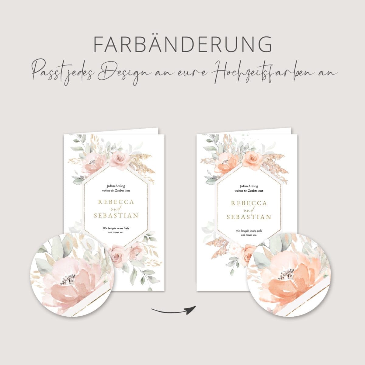 Man kann sie darüber hinaus auch wunderbar nutzen, um verschiedenste andere Elemente ruckzuck an das Hochzeitsdesign anzupassen.