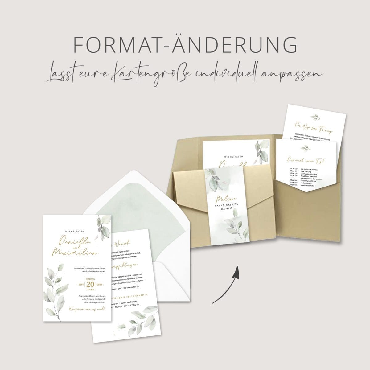 Umfangreiche Informationen wie zum Beispiel den Tagesablauf, Übernachtungsmöglichkeiten oder Geschenkwünsche könnt ihr durch Infokarten sowie Einleger ergänzen, damit die Karte nicht zu überladen wird.