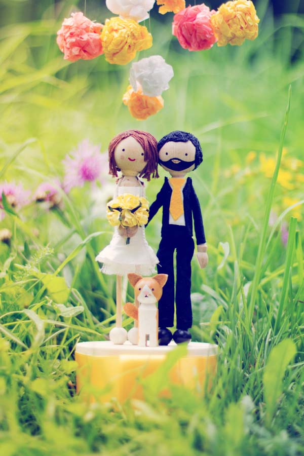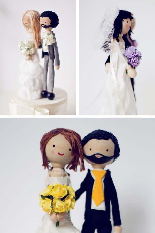 Diese zwei Cake Topper Figuren schenken eurer Hochzeitstorte einen richtig schönen Stil – perfekt auch umrandet mit ein paar Blumen.