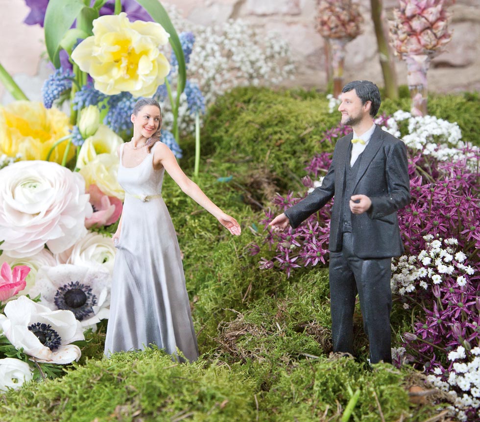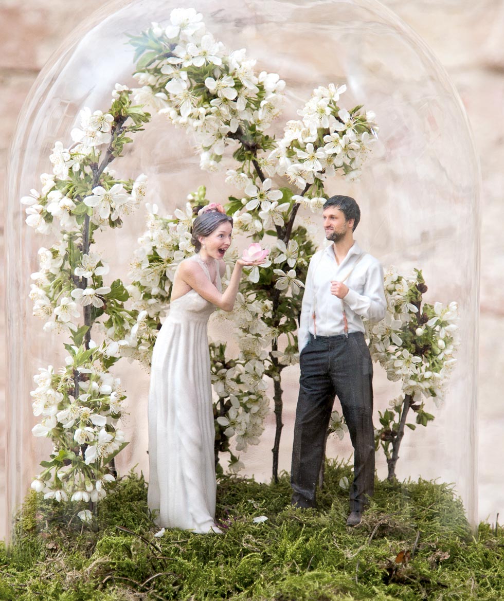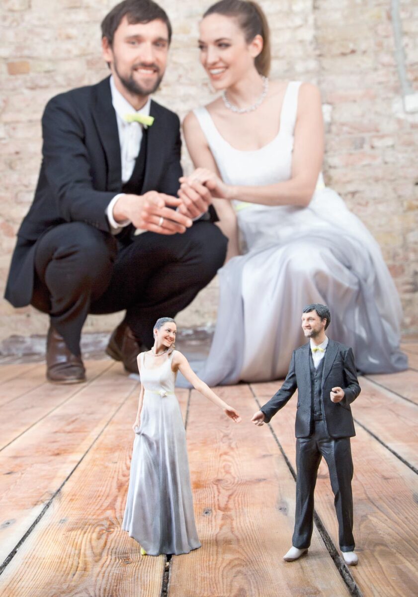 Mittlerweile sind dadurch noch viele weitere Figuren für ihre Kunden entstanden – jedes einzelne Paar immer ganz individuell auf das Brautpaar zugeschnitten: