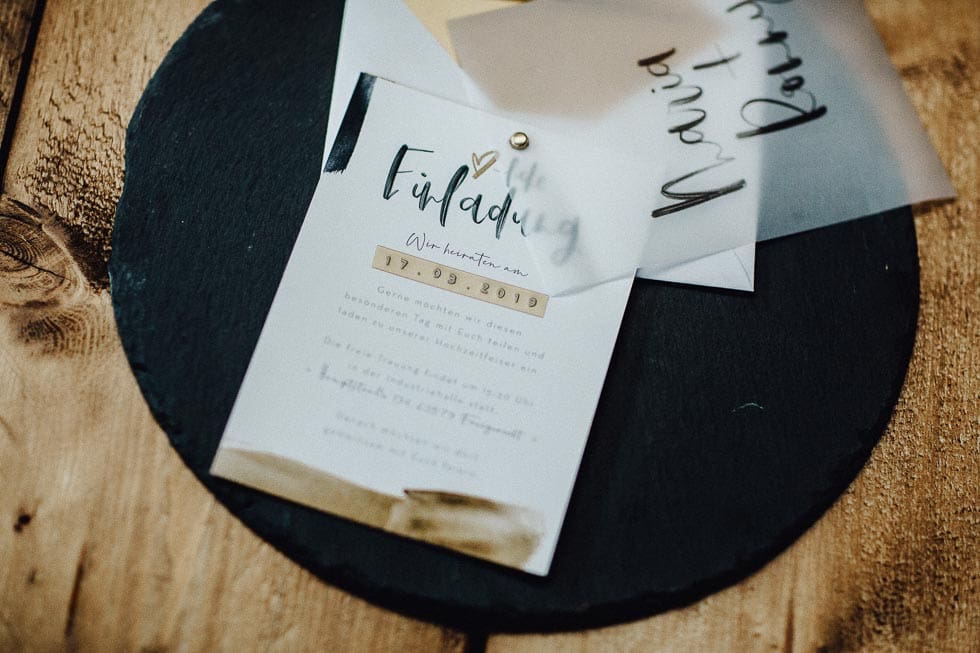 Industrial Wedding Style: Coole Papeterie mit persönlicher Brush-Schrift