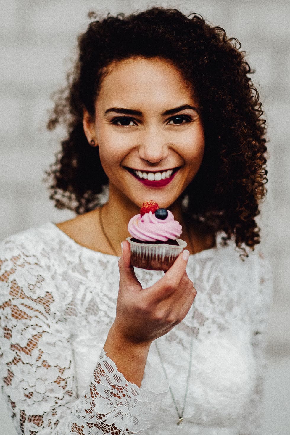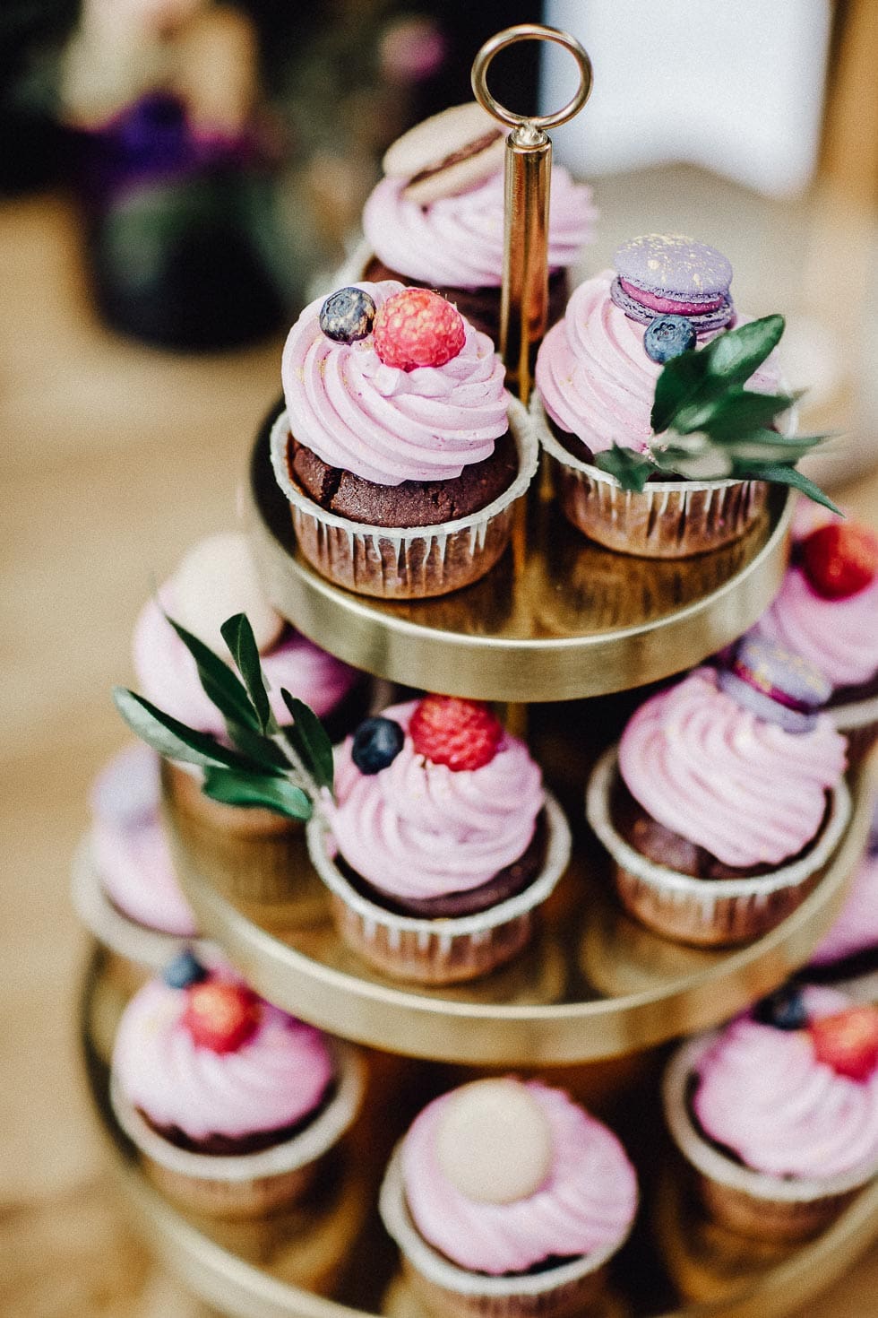 Und anstatt alle Gäste gleich zu Kaffee und Kuchen an den Tisch zu setzen kann sich jeder einen ultraleckeren Cupcake mit leichter Creme und Früchten schnappen. So bleibt eure Hochzeitsgesellschaft gleich in Bewegung.