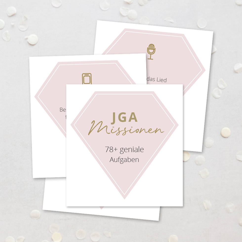 Schickt die Braut auf coole Mission und knackt als gesamtes Team die Diamantenjagd-Challenge. Mit unserem JGA-Spiel "78 Missionen für die Team Braut Mission" erhaltet ihr richtig witzige Aufgaben mit den verrücktesten Ideen – ohne dass es peinlich werden könnte.
