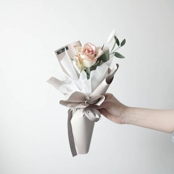 Damit eure Blüten noch wertiger aussehen, verpackt sie mit Seidenpapier, Tonpapier oder Packpapier zu einzelnen, wunderhübschen Sträußchen – so werden sie unwiderstehlich.