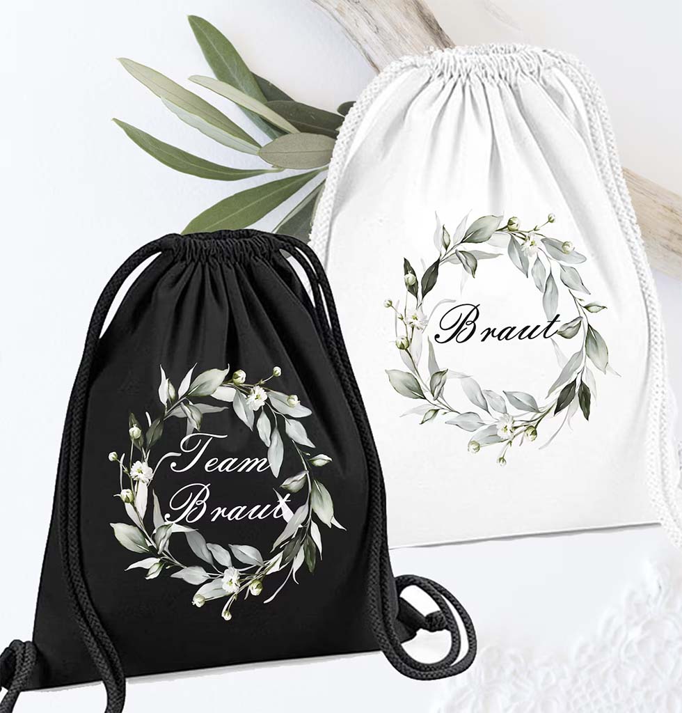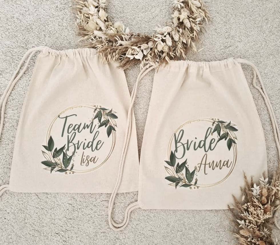 Statt JGA-T-Shirt könnt ihr als Team mit einem coolen Team Braut JGA Turnbeutel, Rucksack oder einer individuell bedruckten Tasche auf Tour gehen und so schon von Weitem als Team erkennbar sein. Zusätzlich habt ihr damit ein tolles Erinnerungsstück, das alle gerne wieder verwenden werden und alle Utensilien für den gesamten Tag prima verstaut.