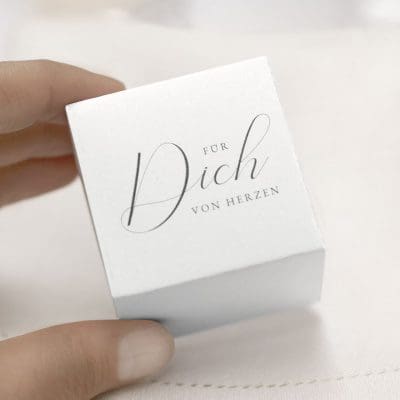 Zusätzlich haben wir die Karten mit einer Risskante versehen, was ihnen gemeinsam mit dem zartstrukturierten Papier in Büttenoptik einen herrlich natürlichen Charme erhält.