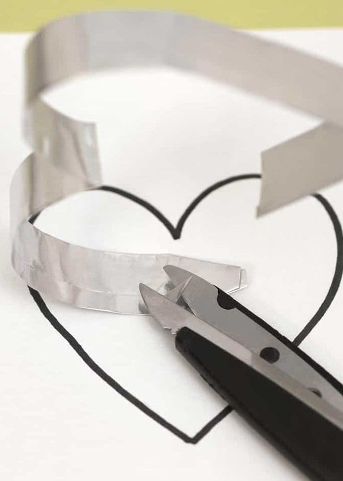 Zeichnet die Form eures gewünschten Keksausstechers auf ein Blatt. Alternativ druckt ihr eine Strichzeichnung aus dem Internet mit eurer gewünschten Form aus. Entlang der Linien biegt ihr nun den Aluminium-Streifen in die gewünschte Form.