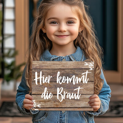 Mit einem Willkommensschild weiß jeder: Hier bin ich richtig und es ist fast so, als würdet ihr eure Gäste persönlich begrüßen vor der Trauung.