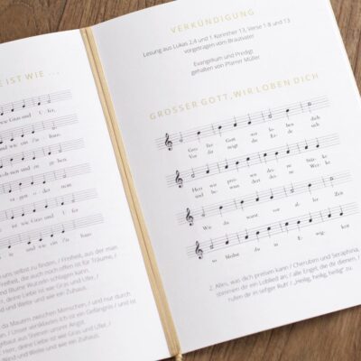 Und falls euch das immer noch zu viel Heckmeck ist, könnt ihr euer Kirchenheft auch einfach professionell auf feines Papier mit tollem Umschlag direkt bei uns drucken lassen und fix und fertig geheftet erhalten.