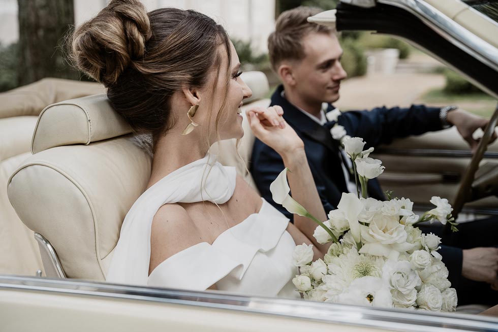 Danach steigt das Brautpaar ins Hochzeitsauto, um im Convoi zur Hochzeitslocation zu fahren. Hochzeitsdosen, die an das Brautauto gebunden werden, verjagen böse Geister. Ebenso bringen Autoschleifen dem Brautpaar und seinen Gästen Glück.