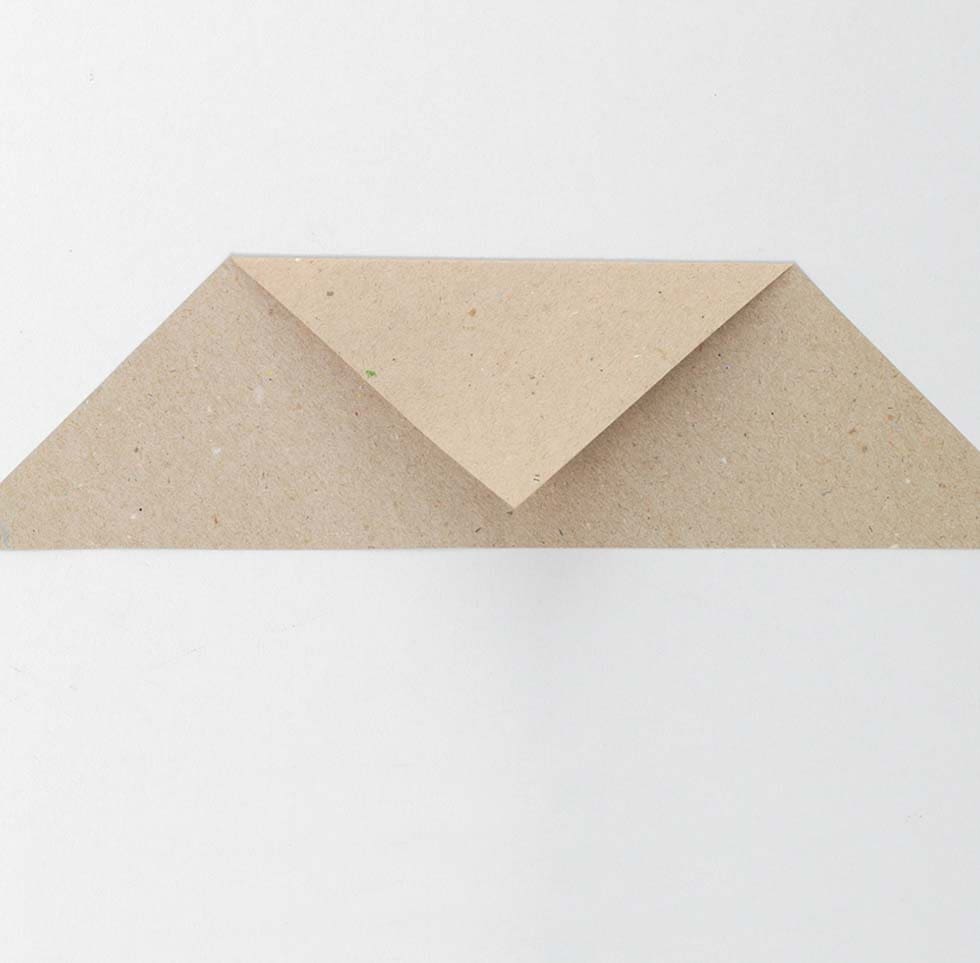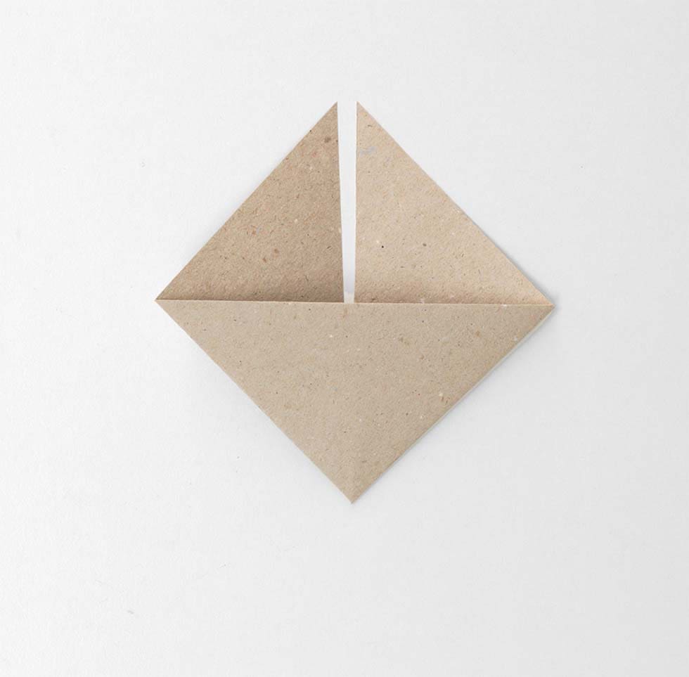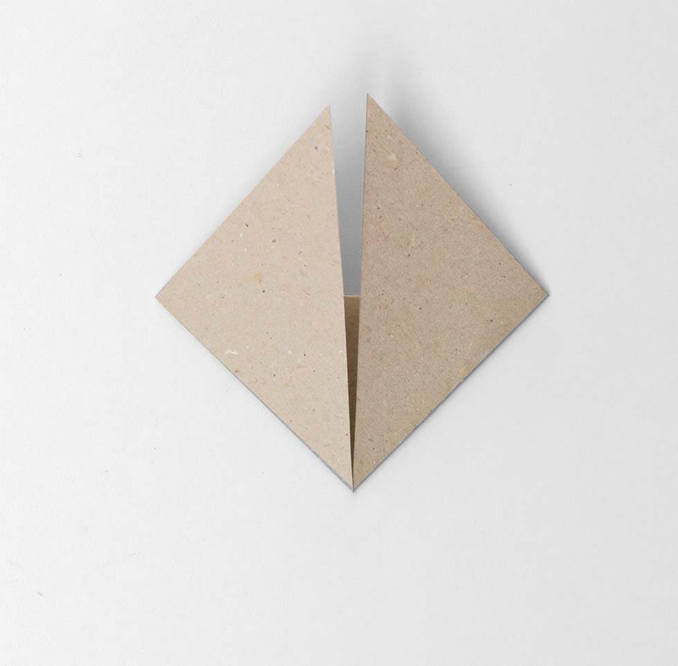 Schneidet aus einem quadratischen Papier ein Dreieck und faltet die breite Spitze nach unten.
