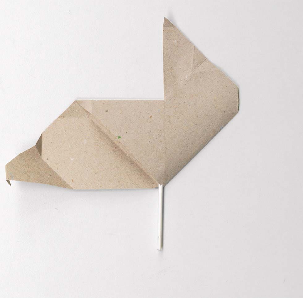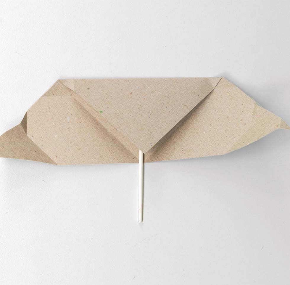 Die obere Spitze wird nun wieder über den Lolli nach unten gefaltet.