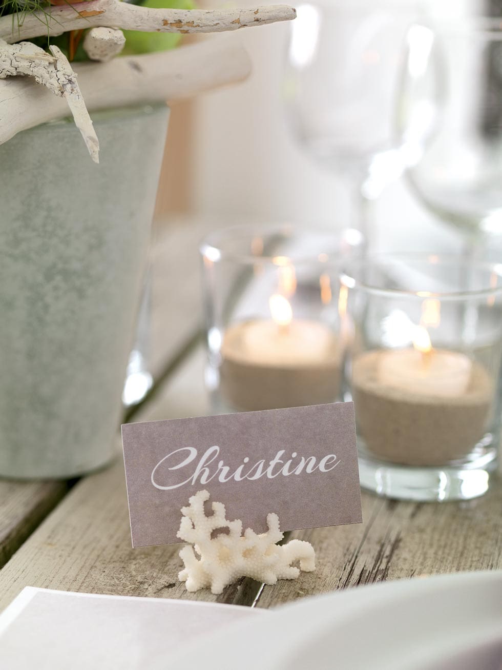 Idee 1: Maritime Tischdeko mit weißer Koralle