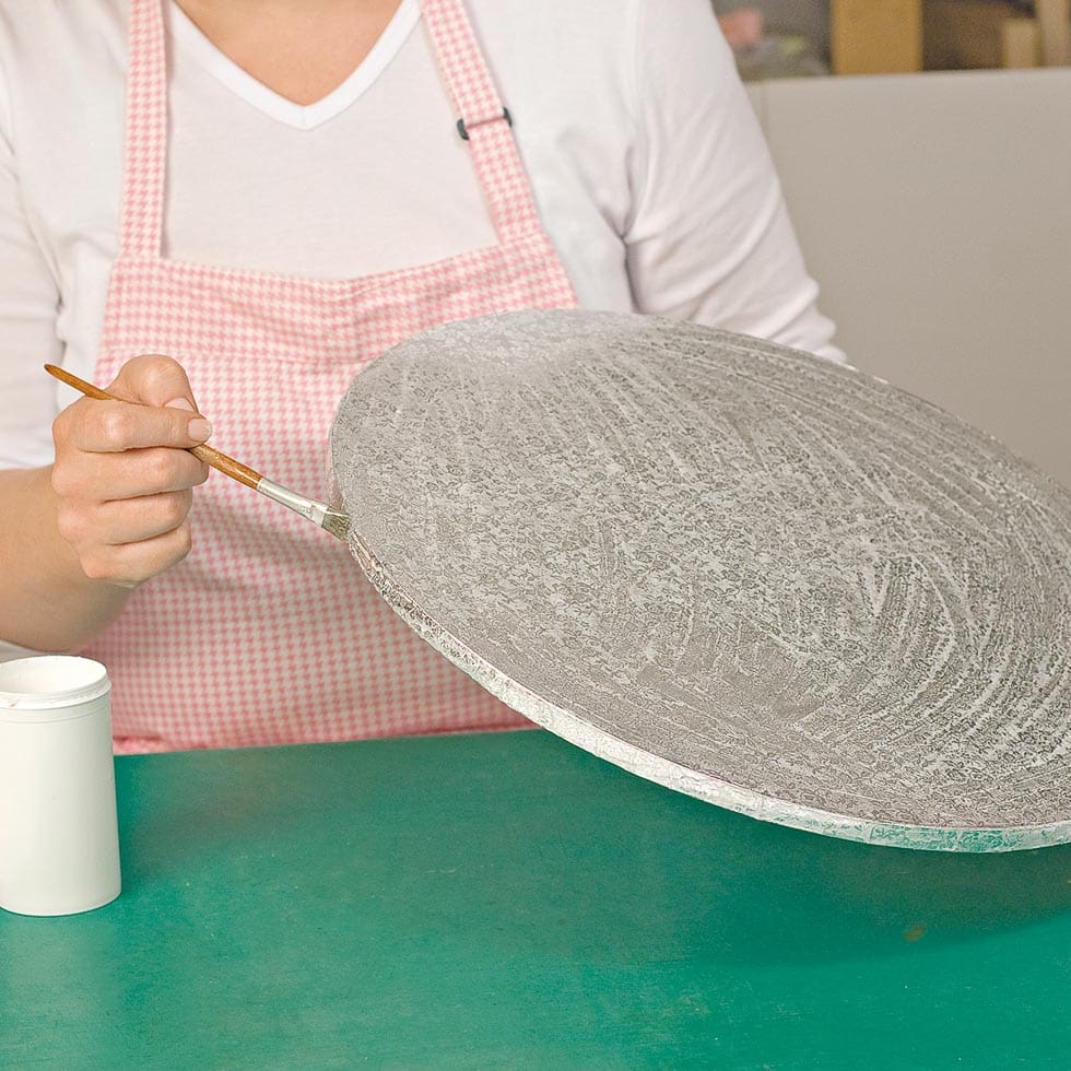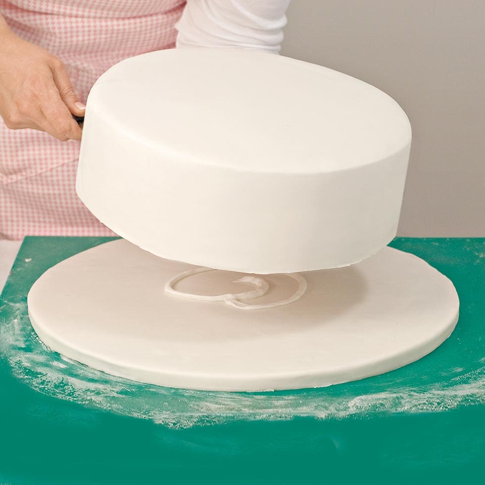 Am besten verwendet ihr ein Cake Board*, das es in verschiedensten Größen gibt.