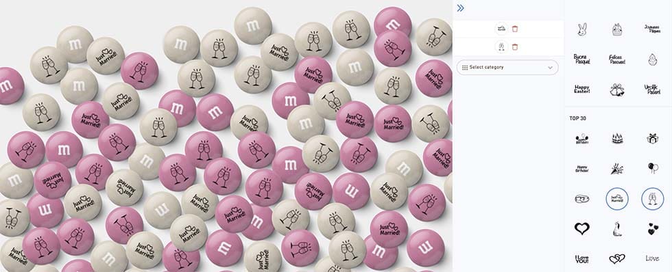 Sucht euch aus den vorhandenen Symbolen zwei eurer liebsten Symbole aus und gestaltet damit eure persönlichen my MMs. Unser Tipp: Ihr müsst nicht nur in der Hochzeits-Kategorie suchen.