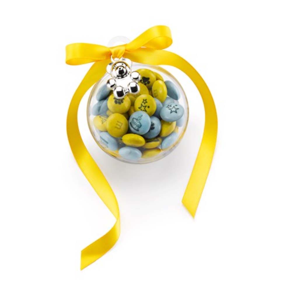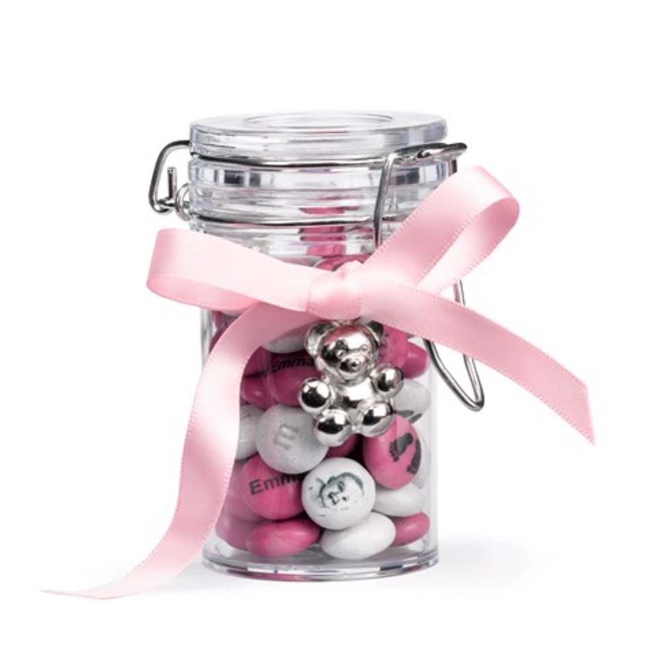 Bügelglas mit myMMs und Anhänger "Für süße Träume" als Gastgeschenk