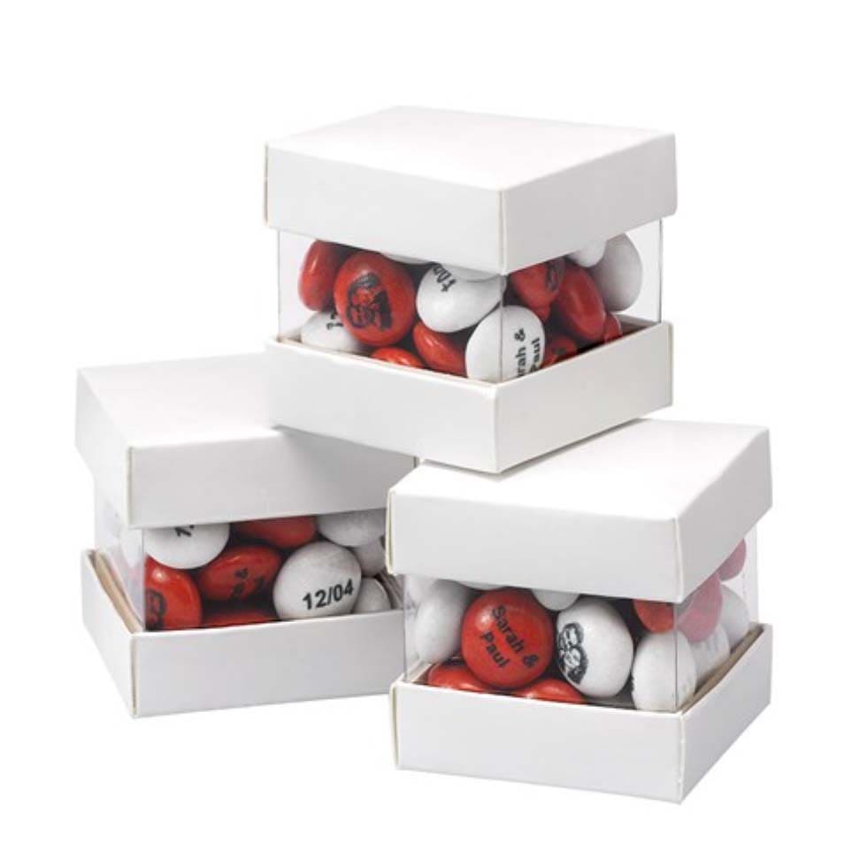 Alternativ bietet euch der Shop aber auch tolle Verpackungen an, die durch ihre Klarsicht-Elemente die Schokolinsen erkennen lassen. In verschiedensten Einheiten von 15 bis 40 g (eine Schokolinse wiegt 1 g) könnt ihr aus den verschiedensten Gastgeschenk-Verpackungen wählen und sie mit weiteren Elementen perfekt zu eurem Festkonzept anpassen.