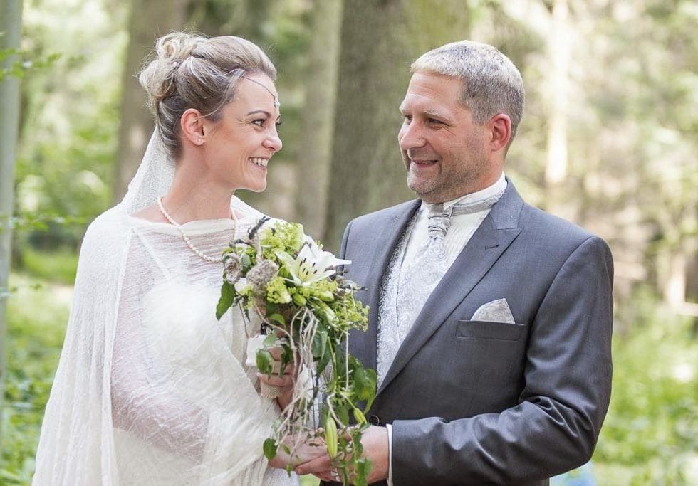 Für Susanne und Andreas gibt es nichts schöneres als die Natur und den Wald. Deshalb hätte es für die beiden auch keinen perfekteren Hochzeitsort geben können als die Waldbühne in Halsbach.