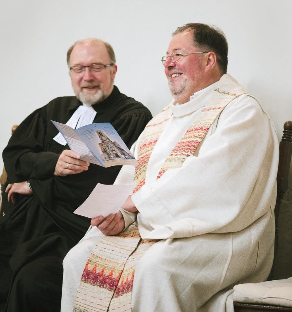 Bei der ökumenischen Trauung mit evangelischem Schwerpunkt wird der evangelische Priester von einem katholischen Pfarrer unterstützt.