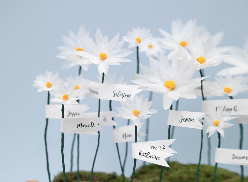 Im Gegensatz zu vielen anderen Papierblumen könnt ihr Margeriten ohne großes Heckmeck ganz einfach selbst machen. Wir zeigen euch Schritt für Schritt wie es geht.