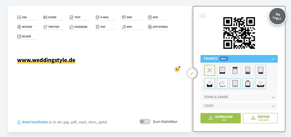 4. Kopiert den Link für eure Hochzeitsfotos und erstellt damit euren individuellen QR-Code.