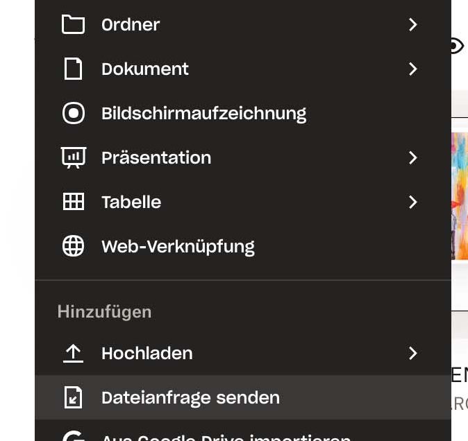 1. Klickt links in der Seitenleiste auf "Dateianfrage senden".