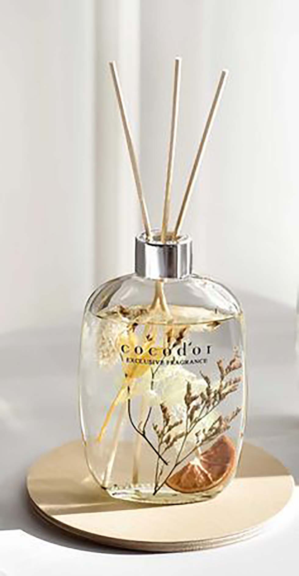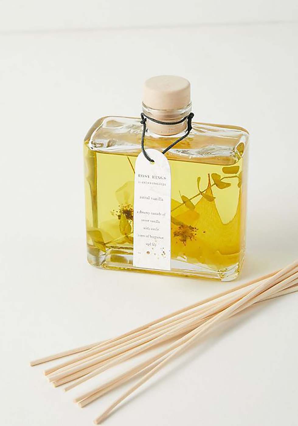 Raumduft-Diffusor mit getrockneten Blüten und Zweigen hübsch dekorieren