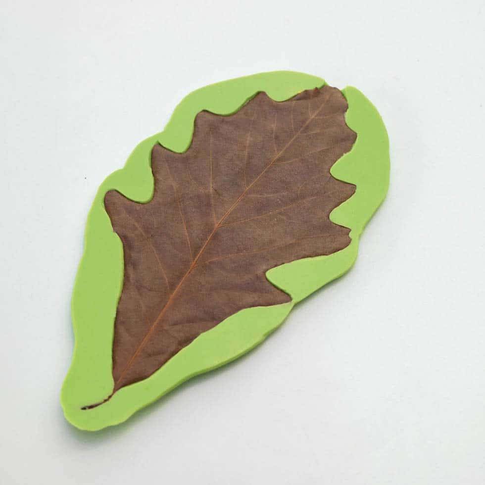 Die Modelliermasse zunächst etwas kneten und mit den Fingern in die Form drücken, damit sich das Blatt gut abformt.