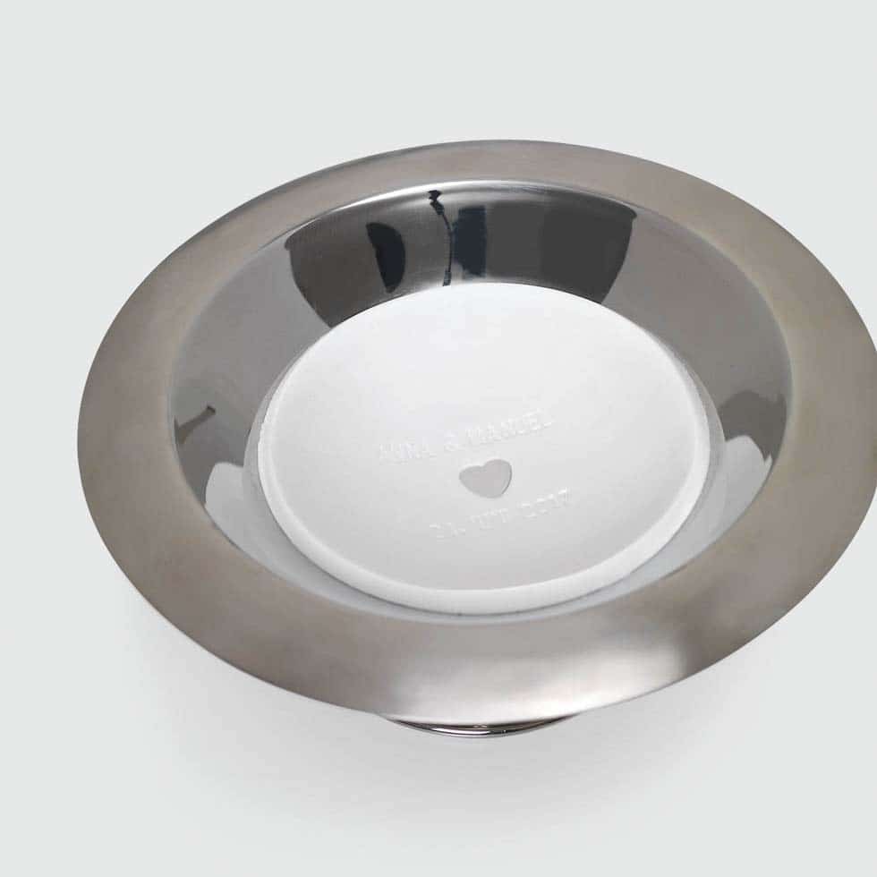 Diese Ringschale könnt ihr mit verschiedensten Dekoroptionen absolut individuell gestalten und auch mit Namen und Hochzeitsdatum oder Strukturen personalisieren.