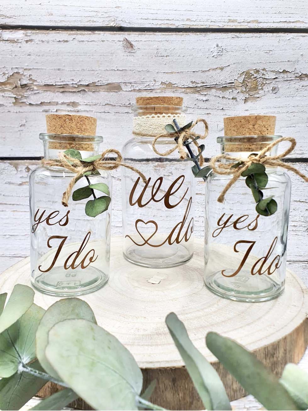 - Beschriftet eure Gefäße mit "Ich will" und "Ich auch" und auf dem gemeinsamen Glas steht "Ja für immer!"