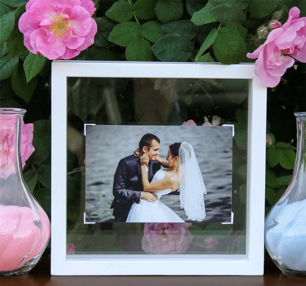 Beliebt ist auch dieser Rahmen, bei dem der Sand das beinhaltete Foto einrahmt.