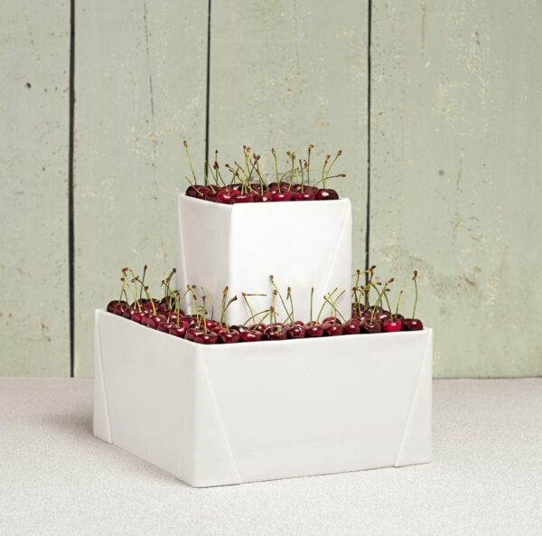 - Seidenbänder oder Tüllbänder: Um die Basis einer Etage gebunden, schaffen sie einen zarten Couture-Look.