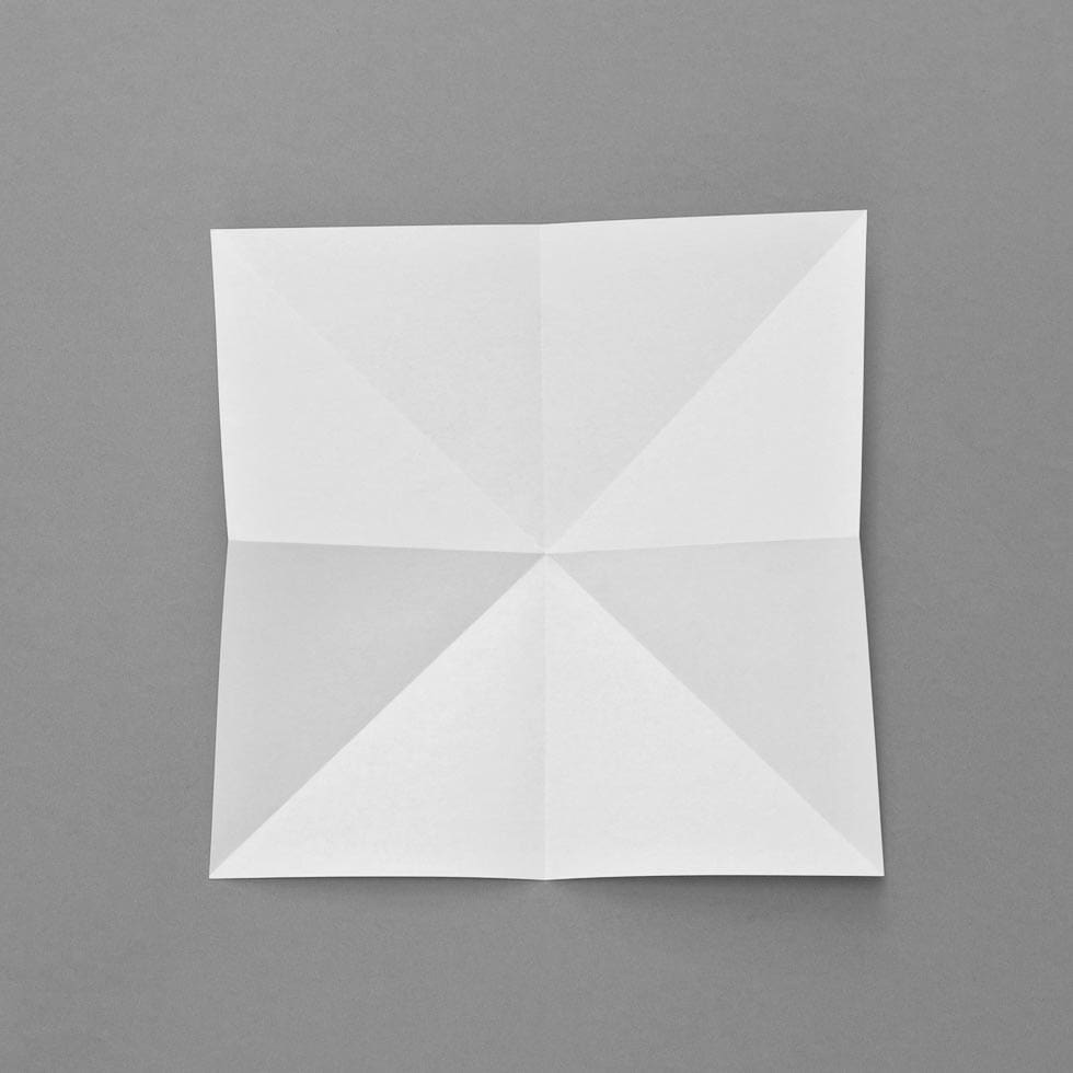 Ein quadratisches Blatt zweimal diagonal und zweimal zur Hälfte falten, um es zu achteln.