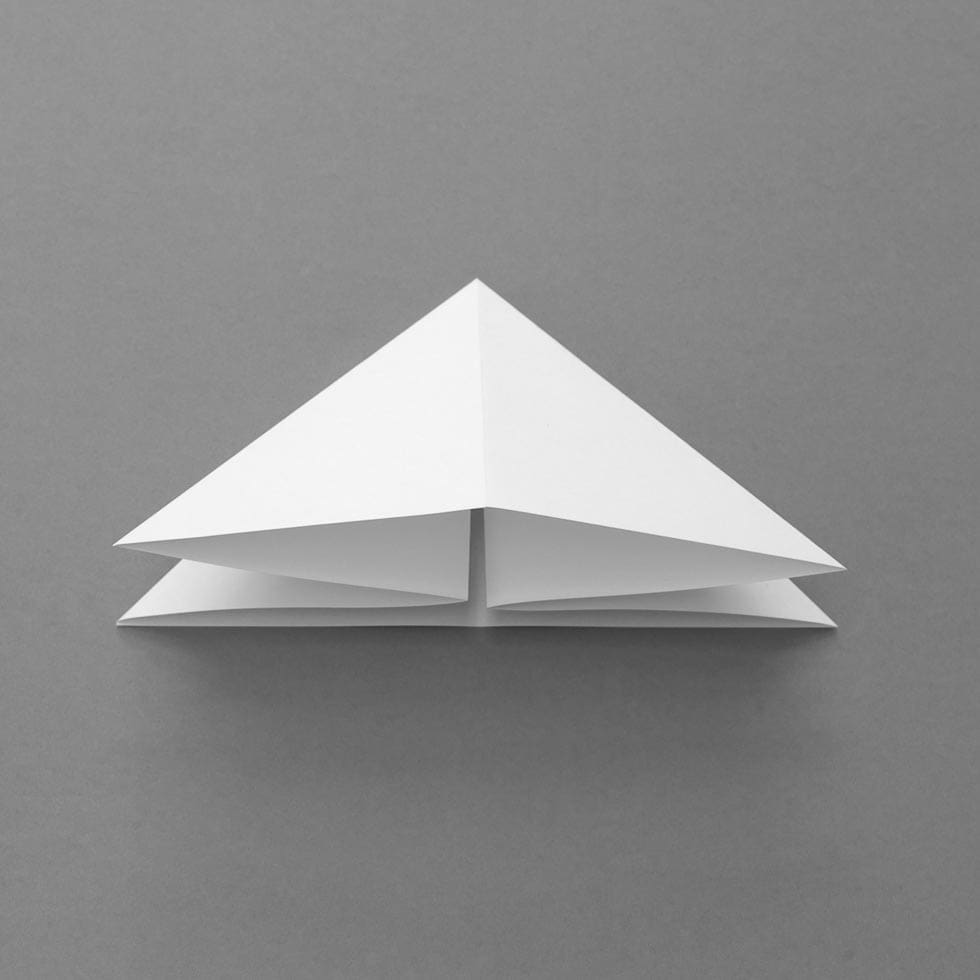 Nun die linke und rechte waagerechte Ecke zur Mitte legen, sodass ein Spitzhut entsteht.