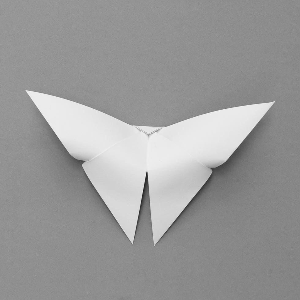 Den Papier Schmetterling in der Mitte falten und wieder öffnen lassen. Fertig!