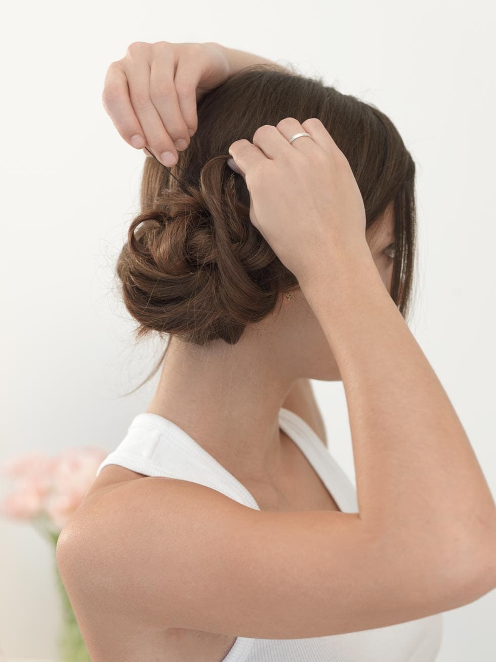 Durch die in sich gedrehte Schnecke können die Haare problemlos mit den Haarnadeln befestigt werden.